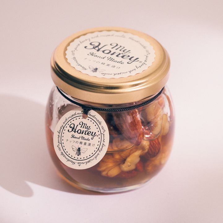 体の免疫を上げるためにはやっぱりはちみつ! はちみつ漬けのナッツは種類も豊富に入っていて、そのまま食べても美味しいし、パンにつけても◎。