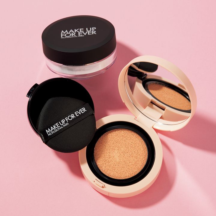 極薄質感クッションとヴェールのようなパウダーで、予定レスな日も美肌に。上:メイクアップフォーエバー HDスキン ルースパウダー 0.1 ¥5,720、下:同 HDスキン クッション1N02 ¥6,490 ※ともに1/1発売(ともにメイクアップフォーエバー)