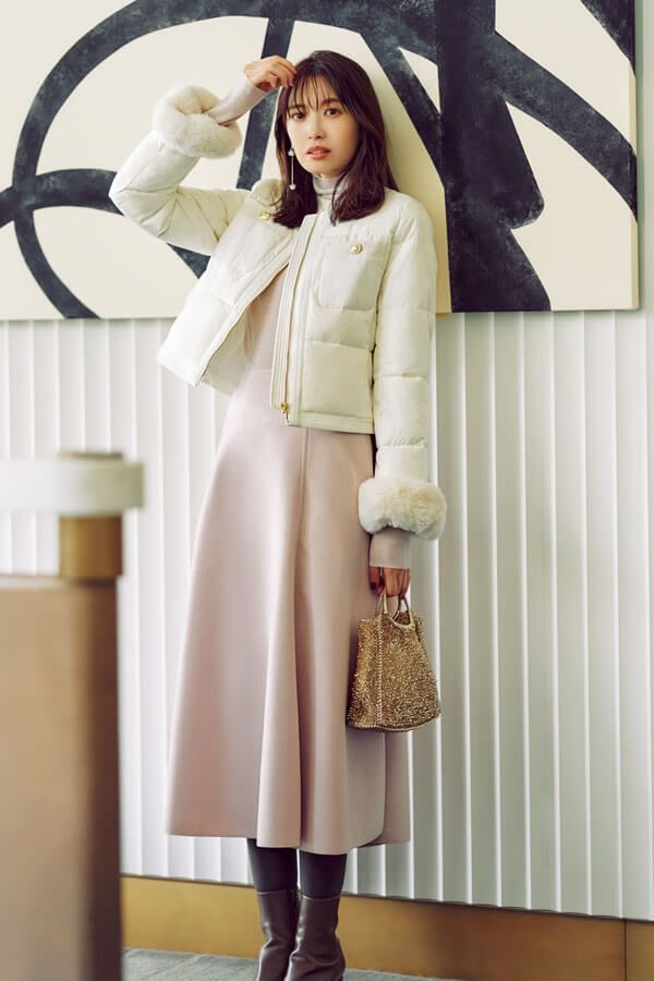 3. 初詣デートはスタイルアップできるダウンで防寒ときれい見えを両立<1/2のコーデ>