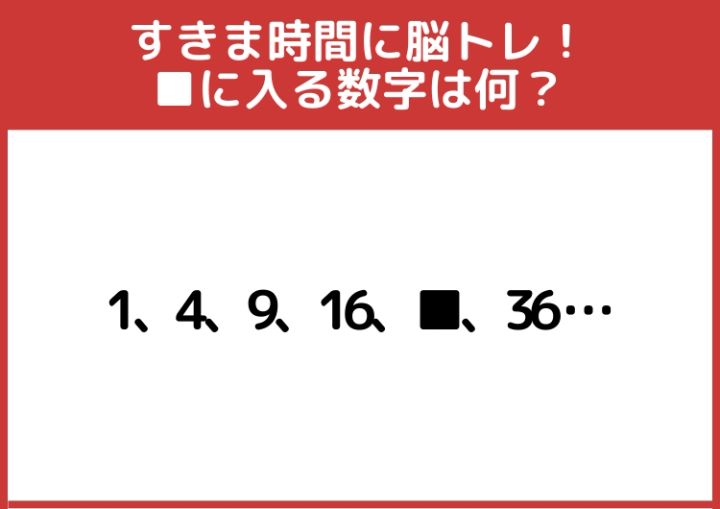 通勤時間にできるに脳トレ!「1、4、9、16、■、36・・・」→■に入る数字は?