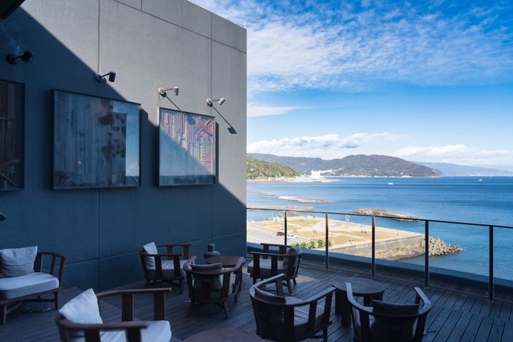 船の甲板をイメージした最上階の「サンブエナデッキ」は、伊東の海と大自然を感じながら、湯上りにリラックスできるスポットです。