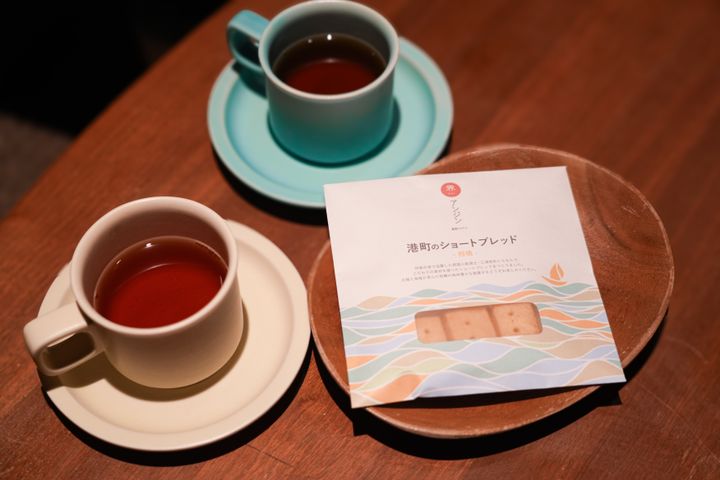 その中でも特に人気なのが「港町のショートブレッド」。香りが爽やかな"柑橘"と塩味がカカオの甘味を引き立てる"塩カカオ"の二種類の味があり、"柑橘"はお部屋菓子として楽しむことができました。