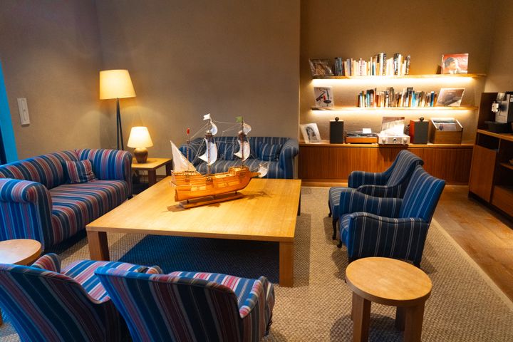 1Fフロントの奥には、船旅をテーマにした落ち着いた空間のトラベルライブラリーがあります。