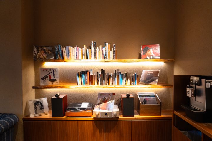 壁沿いにある本棚には、三浦按針や航海・船、イギリスに関する書籍や、種類豊富なレコードが揃い、自由に手に取って楽しむことができます。雨で外を散策できない日でも、雨音とレコードの音楽に耳を傾ける優雅な時間も過ごせそうですよね。