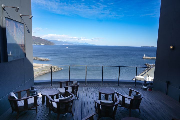 半個室になった窓際の席からは、綺麗な海を見ることができます。