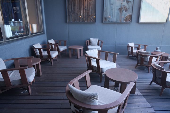 同フロアにある温泉を楽しんだ後、湯上がりにデッキを訪れると、涼しい風にあたりながらととのうことができます。ソファチェアに座って、目の前に広がる美しい太平洋の景色を一望しながら、心と身体を落ち着かせる極上のリラックス時間を過ごせます。