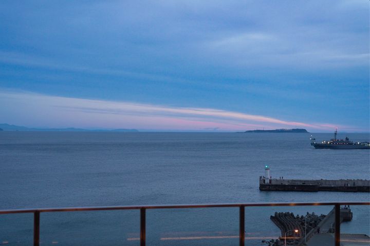 特に夕方から夜にかけては、海と空の色が刻々と変化し、その美しいグラデーションがとっても美しいです