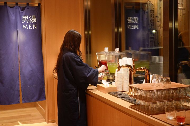 温泉の余韻と湯涼みが楽しめる、湯上がり処には、湯上がりドリンクとアイスキャンディーが無料で提供されています。湯上がりドリンクには、ソフトドリンクのりんご酢や、クラフトビールが楽しめます。ビール好きにはたまらないですよね・・・!