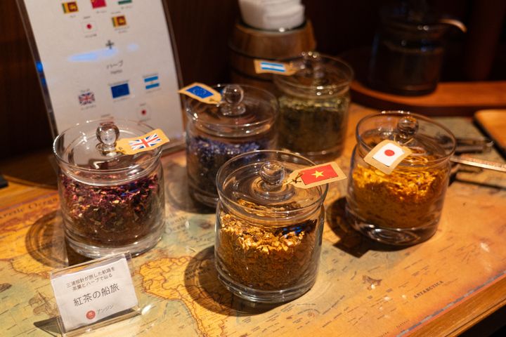 また、トラベルライブラリー内にある「紅茶の船旅」は要チェック。三浦按針がイギリスから日本まで旅した実際の航海ルートに沿って、その土地の茶葉やフレーバー使用した紅茶をセルフサービスで楽しむことができます。数種類から選択できるので、好みのブレンドで自分だけの一杯に出会えます。