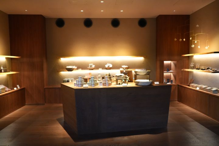 そのほかにも、実際に部屋で使用されている茶器や、紅茶など、旅の思い出やお土産にぴったりの商品が多数並びます。星野リゾートならではの洗練されたラインナップは、見ているだけでも楽しいひとときを過ごせます。