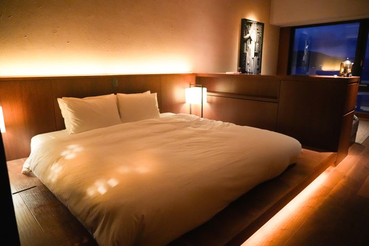 紅茶を飲みながらゆっくりした時間を過ごした後は、贅沢にベッドで一休み。ダブルベッドはふわふわで、夢の中に沈んでいってしまいます・・・。