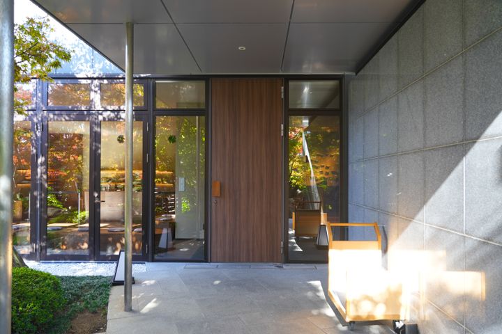 宿の入り口までは、美しいオレンジ色の紅葉に囲まれた橋を渡ってアクセスします。船に乗り込む桟橋をイメージしているそうで、なんだか乗船前の気分になってワクワクします。