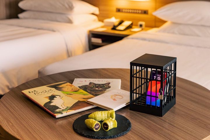 同プランでは、推しロスで推しグッズを手放したいが、ただ処分するのは忍びないという人に向け、大仁神社にて「推しグッズお清め祓い」を実施。また、温泉露天風呂が楽しめる客室には、伊豆名産のわさびを使用した「わさびモナカ」と大人も泣ける絵本を用意。誰の目も気にすることなく、思いっきり涙を流すことができる。突然のショックな状況に検索が止まらず、心が休まらないゲストには、スマートフォンを格納するBOXを貸出し。デジタル機器から離れて自分を労わる休息の時間を過ごせる。
