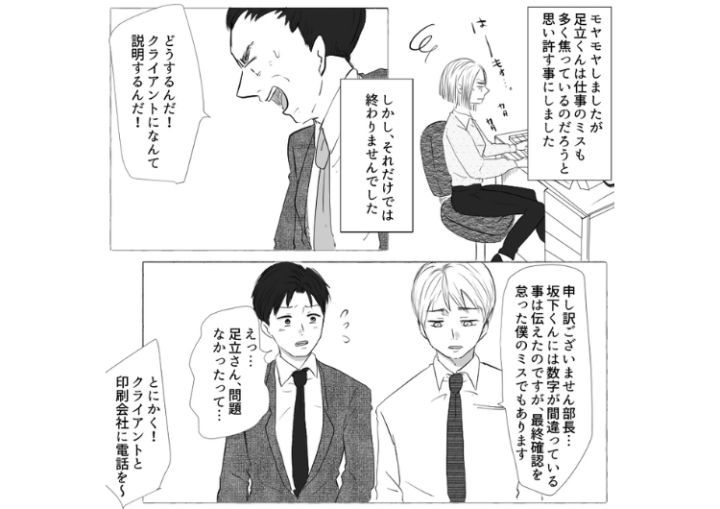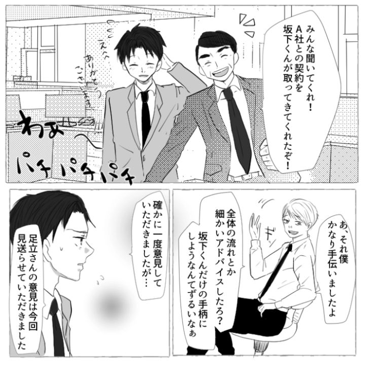 衝撃のエピソードを漫画化!今回は、希望の部署に異動できず配属された部署で問題行動ばかり起こす男のお話。先輩の手柄横取り、後輩への責任転嫁など周りに迷惑をかけ続けた男がたどる末路とは・・・。