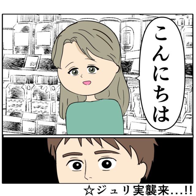 「こんにちは」にこやかに挨拶をしてきたジュリ実さんを見て、ろみ緒さんは驚いて目を見開きます。