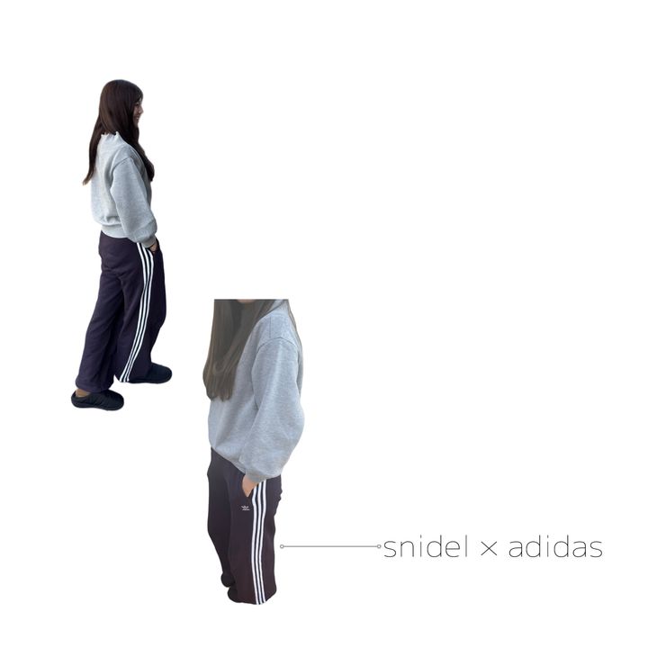 早速、snidelとadidasのコラボパンツと合わせて着てみました。