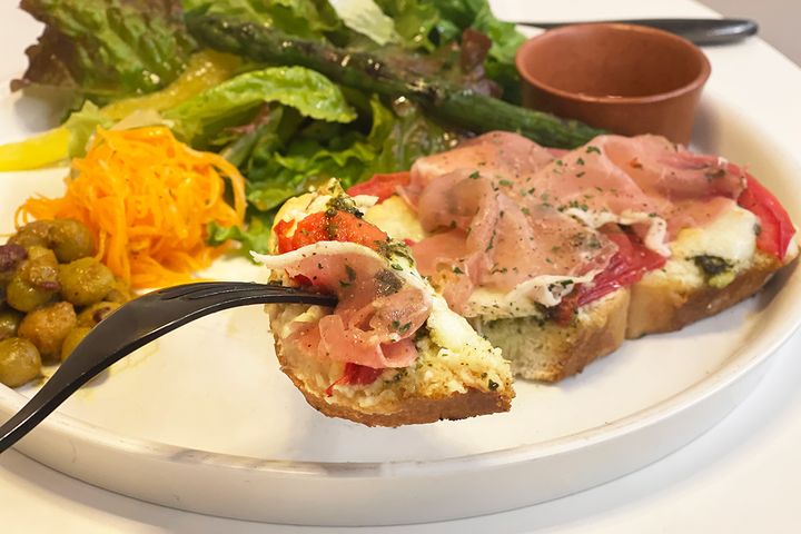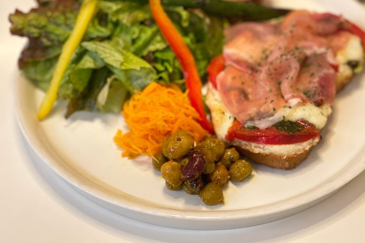 パンの上にベシャメルソース、トマトやバジルソース、モッツァレラがトッピングされ、とろふわっとした食感がたまりません。生ハムの程よい塩気も合わさり、大人なクロックムッシュに仕上がっています!