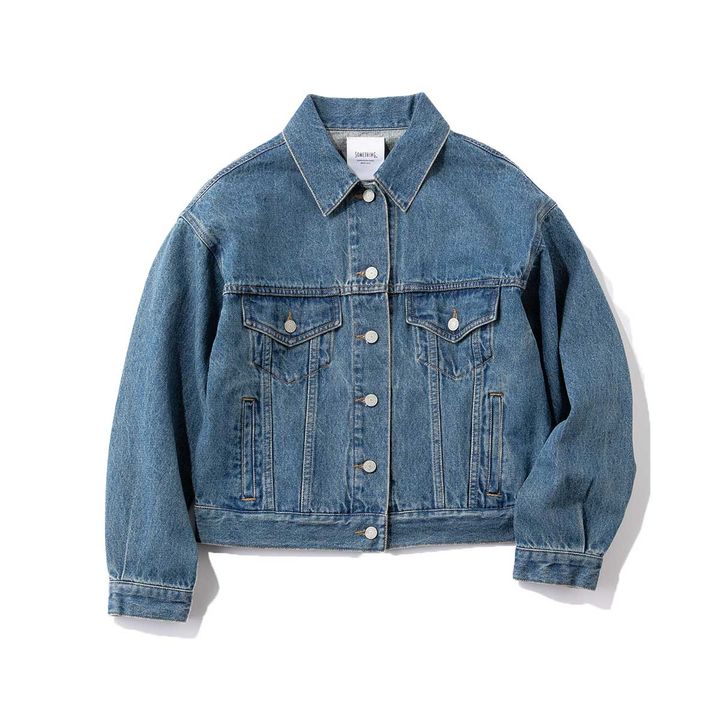 程よくウォッシュのかかった風合いのあるデニムジャケットが使いやすい!¥14,300(SOMETHING/エドウイン・カスタマーサービス)