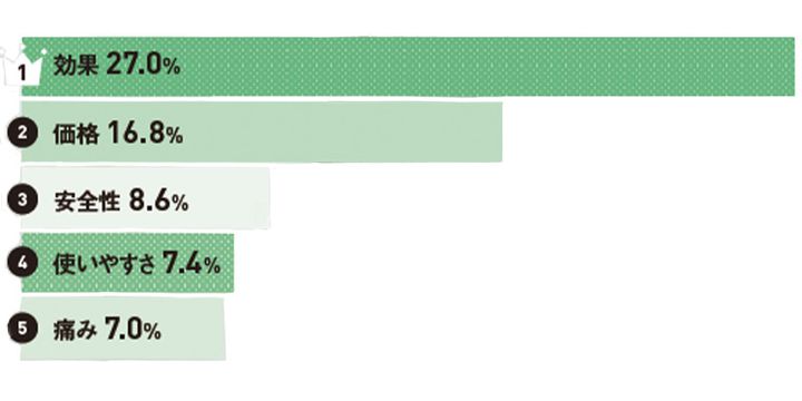他にも、メンテナンスの楽さ、メーカーへの信頼感、口コミなども。家庭用脱毛器使用時の悩みには、肌の黒ずみやアフターケアが挙がりました。