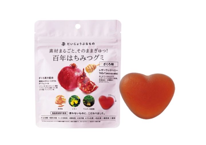 美肌効果も期待でき、いくつ食べても罪悪感なしのグミ。百年はちみつグミ ざくろ味 49g ¥486/だいじょうぶなもの(コスメキッチン)