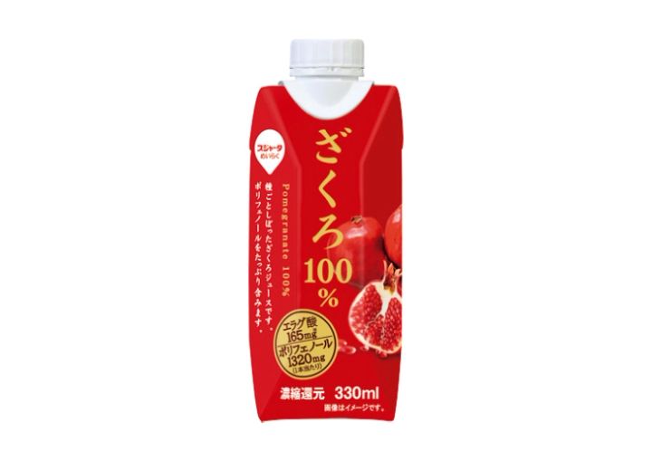 紅茶や牛乳で割ってもおいしく、アレンジは無限大。スジャータ ざくろ100% 330mL ¥216/スジャータめいらく