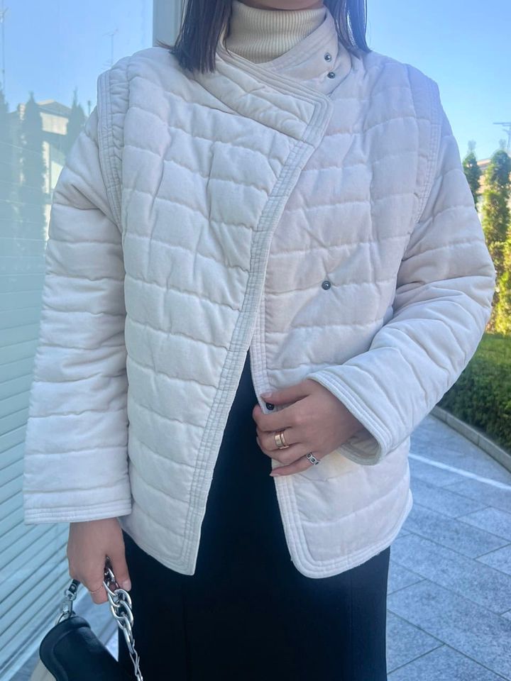 「袖が取り外し可能なのでパデッドベストとしても使え、いろいろなスタイリングを楽しめるところが気に入っています。イザベル マラン特有のショルダーのシェイプがモードで可愛く、中綿入りで暖かいので布団に包まれているよう」ステディスタディ PR藤田絵里子さん