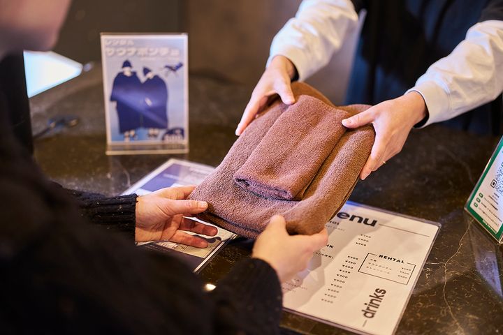 取材時は貸切利用をチョイス。チェックインを済ませてタオルを受け取ります。
