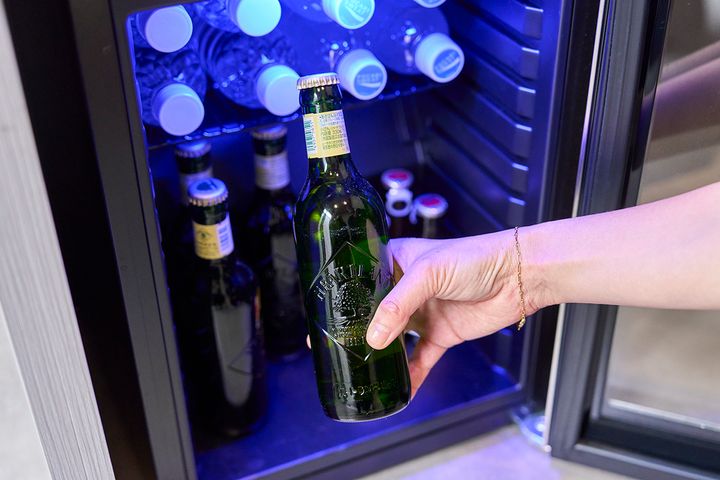 シアタールームでは、ドリンクを購入することもできます。アルコールは、ビール、レモンサワー、ハイボール。ソフトドリンクは、ミネラルウォーターをはじめ、「ポカリスエット」や「オロナミンC」などのサウナ後にうれしいドリンクも。温かいハーブティーやコーヒーでほっとひと息つくのもいいですね。
