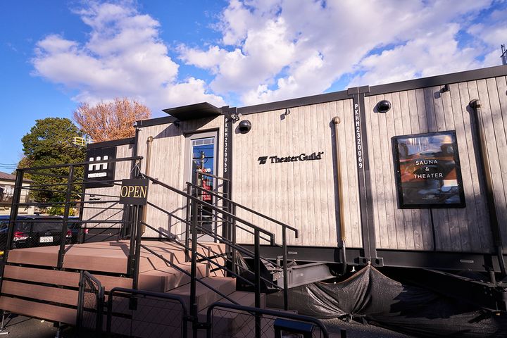 「シアターギルド 下北沢」があるのは、サウナ施設「HUBHUB下北沢(はぶはぶ しもきたざわ)」内。2023年12月オープンの、トレーラーハウスを改装した珍しいサウナ施設です。サウナ施設に併設している音響システムは、シアターギルド社®の特許技術「サイレントシアター®」を採用しています。