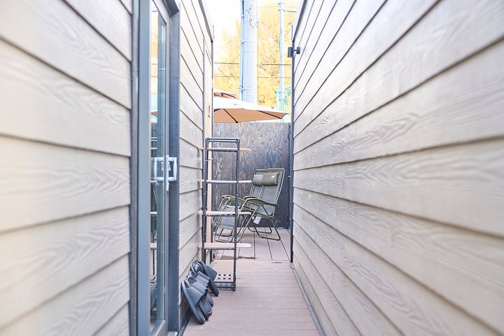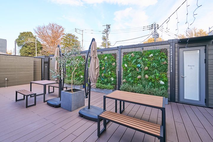 完全にひとりの空間でありながらも、天井がなく外気に面している開放感がたっぷり。ひとりだからこそ、何を飲んでもいいし、音楽のチョイスも自由。自分のペースで、ゆっくりとサウナを満喫できます。