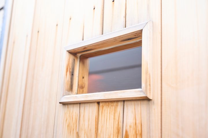体を洗ってさっぱりしたら、シャワー室を出て早速奥の専用サウナの部屋へ。どんなサウナかな。サウナの扉を開ける瞬間は、サウナを楽しむなかでも、とてもわくわくする瞬間です。