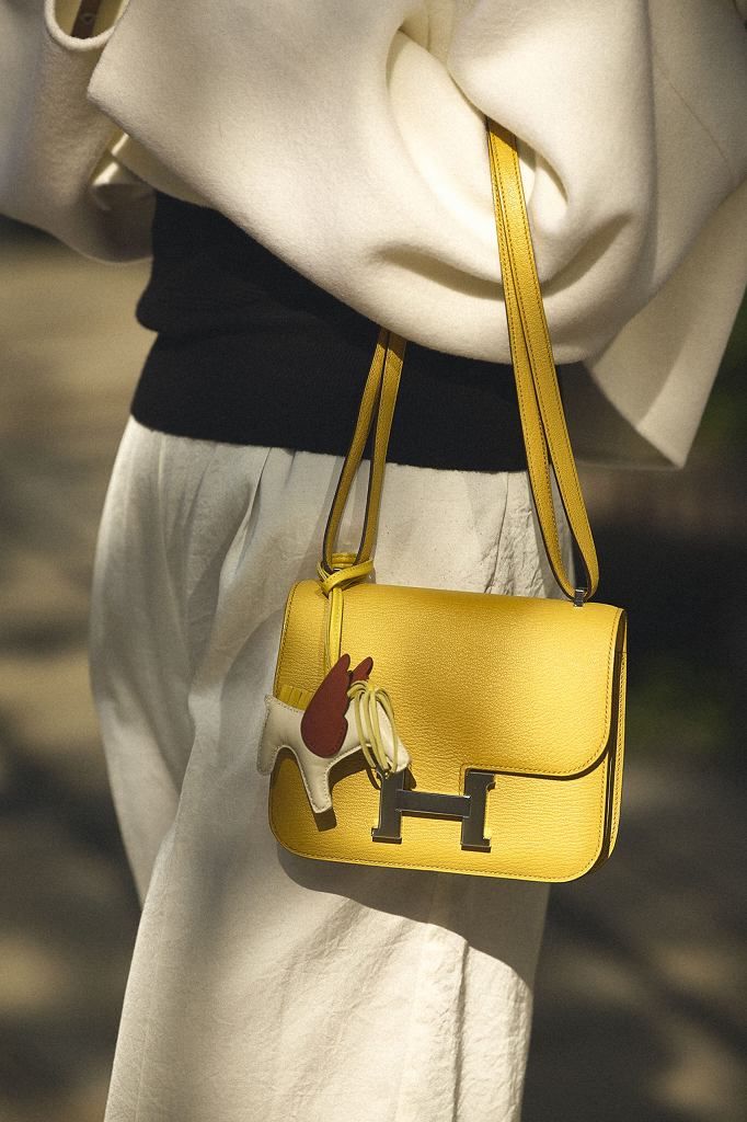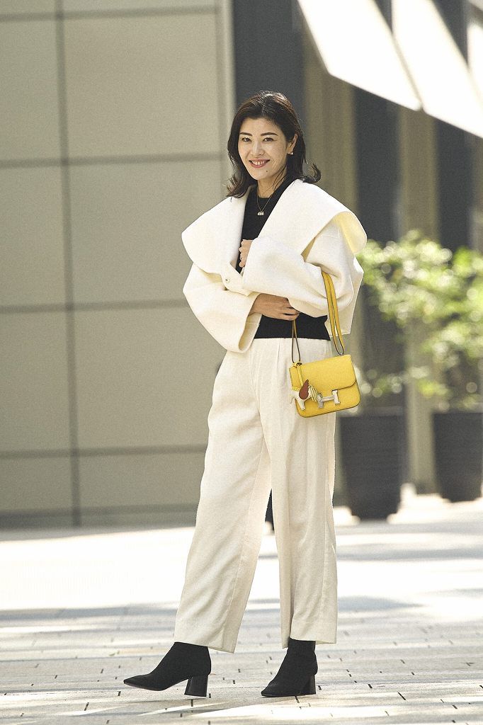 バッグは数年前からずっと狙っていたコンスタンス。小さいサイズだからこそ、差し色として使いたかったので定番カラーではなくカラフルな色のものをエルメスの担当の方にリクエストしていたところ、やっと今年出合うことができました!同じイエロー系のペガサスチャームも可愛すぎるポイントになってくれています。鮮やかなイエローのコンスタンスを主役にする全身ホワイトのワントーンコーデを冬は楽しもうと思います。ニットとブーツもエルメスを愛用中。