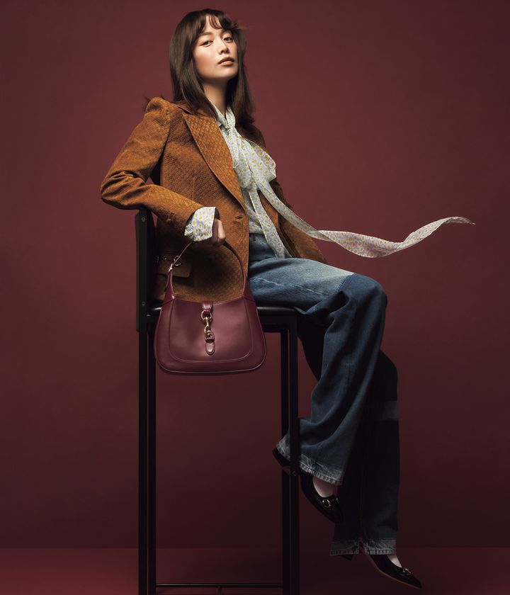 1960~70年代のジェットセッターのアイコンバッグだった〝グッチ ジャッキー〟。歴代のクリエイティブ・ディレクターにより再解釈され続け、時代と共に物語を紡いできた逸品。ブランドの新章の象徴となるカラー〝グッチ ロッソ アンコーラ〟は、グッチ創設者グッチオ・グッチがポーターとして働いていた頃、ロンドンのホテル ザ・サヴォイにあるエレベーターの内壁の色からインスパイアされたとの逸話も。