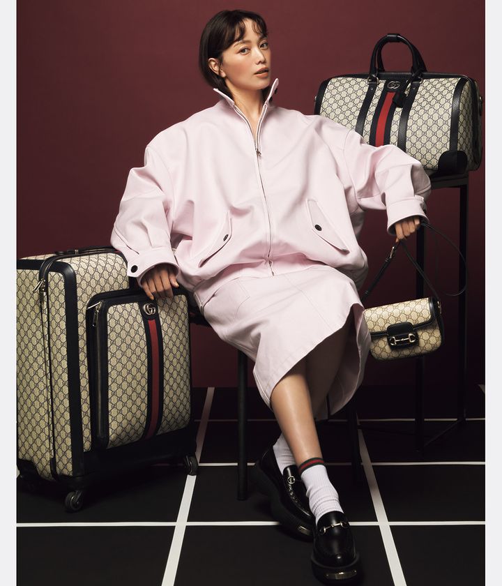 バッグ「グッチ ホースビット 1955」[H14.5×W20×D5cm]¥462,000ボストンバッグ¥357,500スーツケース¥462,000ジャケット¥484,000スカート¥231,000ローファー¥194,700ソックス¥27,500(すべてグッチ/グッチ クライアントサービス)