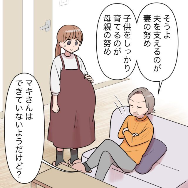 すると、「そうよ。夫を支えるのが妻の努め、子どもをしっかり育てるのが母親の努め」そう言った後で、「マキさんはできていないようだけど?」ソファにふんぞり返って義母が言いました。