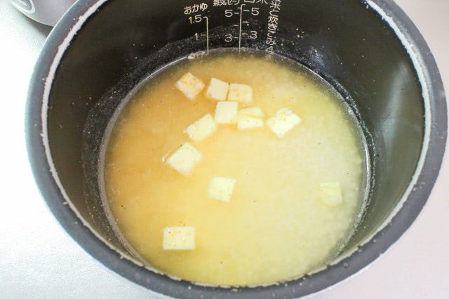 普通モードで炊きます。炊飯中はコンソメとバターのおいしそうな香りが漂いました♪