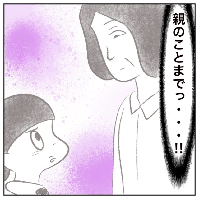 「親のことまで・・・!!」これにはさすがにまるさんも反感を覚え、先生をキッと睨みました。
