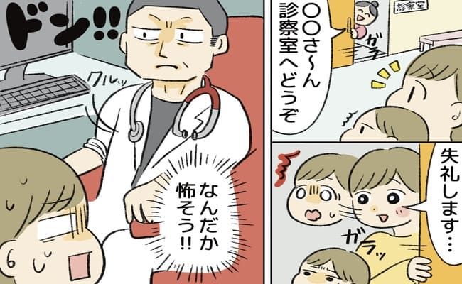 6歳の息子は、1歳ごろから耳鼻科に通っています。しかし、設備の古さが気になったので、別の耳鼻科を受診することに。その耳鼻科はママ友からの評判も良く、外観もきれいです。しかし、息子に「新しい耳鼻科に行ってみようね!」と声をかけると「怖いから嫌だよー」と涙目になってしまいました。それでもなんとか息子を説得して、耳鼻科へ行くと、先生がまさかのこわもてで……!?