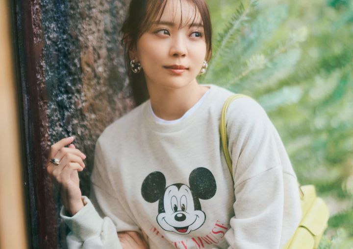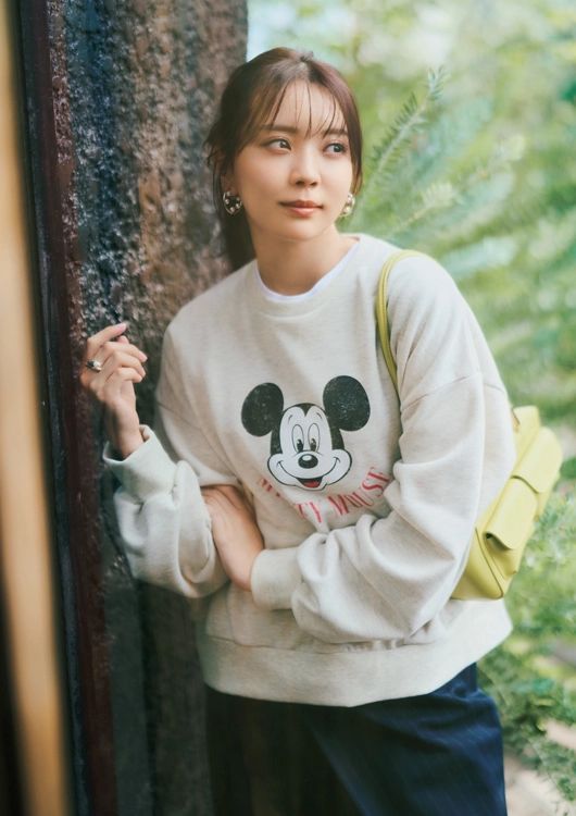 Tシャツ¥12,100/カデュネ スウェット¥5,489/ロペピクニック(ジュン) パンツ¥22,000/メゾンスペシャル(メゾンスペシャル 青山店) イヤリング¥8,580/イットアトリエ(フォーティーン ショールーム) リング¥6,600/ロニ バッグ¥7,590/カシュカシュ(アンビリオン)