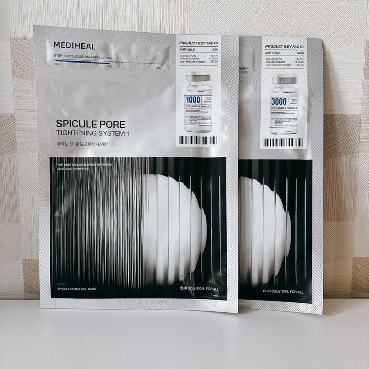 これは、本当に本当にメディヒールの底力を改めて感じたマスクパック。開いた毛穴が、翌朝小さくなっているのがちゃんと実感できる、超ハイテクマスクパックで、2つのステップで構成。ステップ1では付属のニードルタイプの美容液を塗り、ステップ2でマスクパックを貼ります。美容液はニードル入りなのでひりひり~! パックをしたあとも肌を手で抑えるとひりひりする感じがあります。でもその分、ちゃんと効果もあるからやめられない。このパックは1,000と3,000の2つのレベルがあるので、まずは1,000から試していただけたら。そして、翌朝のお肌と毛穴の変化を実感してみてください。