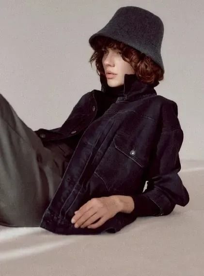 色やデザインに頼らずに見方を変えてメンズのアイテムにヒントを得てベーシックをアップデート。「まるでビッグシャツのようなシルエットはそで口をめくってインナーを見せたり、えりを立てて着たりとアレンジもしやすい形。コートの中にも着られて、羽織りアイテムとしても優秀なサイズ感と厚み」(スタイリスト・樋口さん) ダークグレーデニムジャケット/UNIQLO