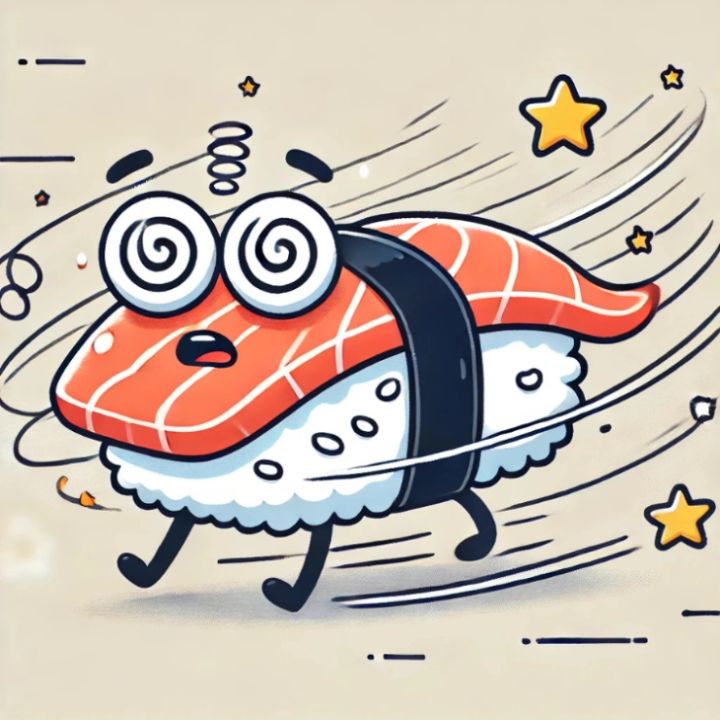 AIが描いたこの絵は、何を表しているかわかりますか?ヒントは、お寿司がどんな状態になっているかを考えること!目に注目するとわかりやすいかも!?