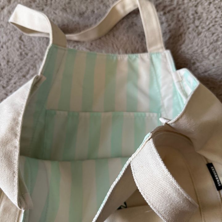 中のデザインも可愛くて、裏地にはパステルグリーンのストライプが💚