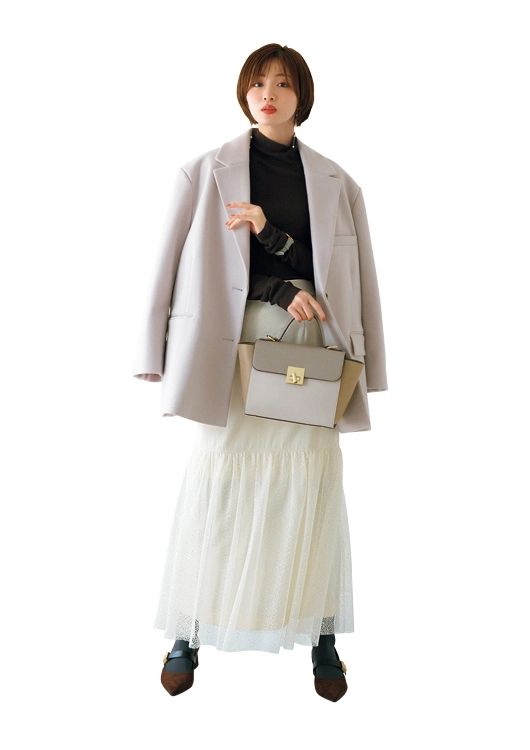 アウターとのバランスが難しいミニボトムも、ジャコットなら難なくクリア。