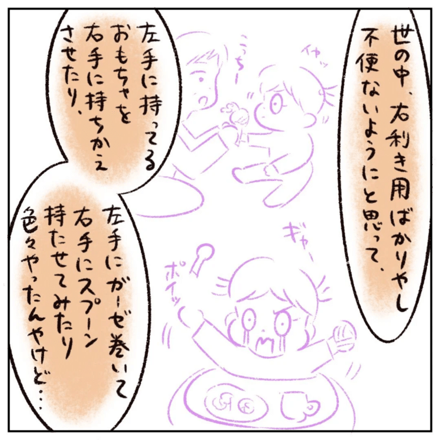 お母さんは左利きから右利きに直そうとしていたのですね!