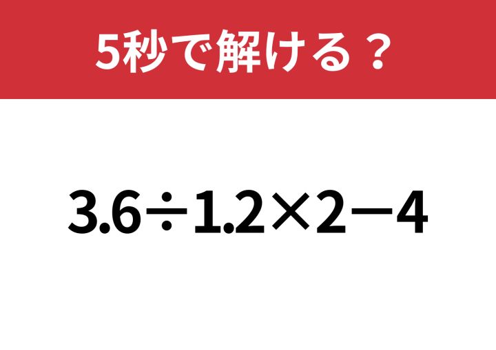 大人でも間違える意外な難問!?「3.6÷1.2×2−4」5秒で解ける?