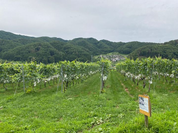 「山辺ワイナリー」は、界 松本から車で約10分、美ヶ原高原の麓に広がるワイナリーです。松本平を見下ろす標高600~850mに位置するブドウ畑で、シャルドネ、ピノ・グリ、ソーヴィニヨン・ブランなどを栽培しています。