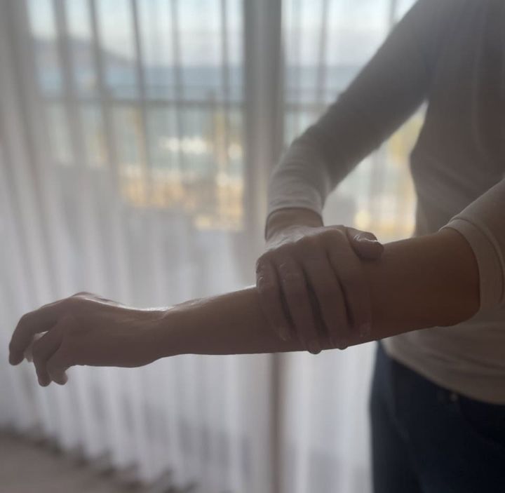 竹下さんにならって、袋にあまった美容液もカラダに塗ってみました。そしたらですよ、9時間経って触ってみたら、まだしっとりモチモチしていたんです。個人差はあると思いますが、類まれな保湿力の高さにマジで感動しました!