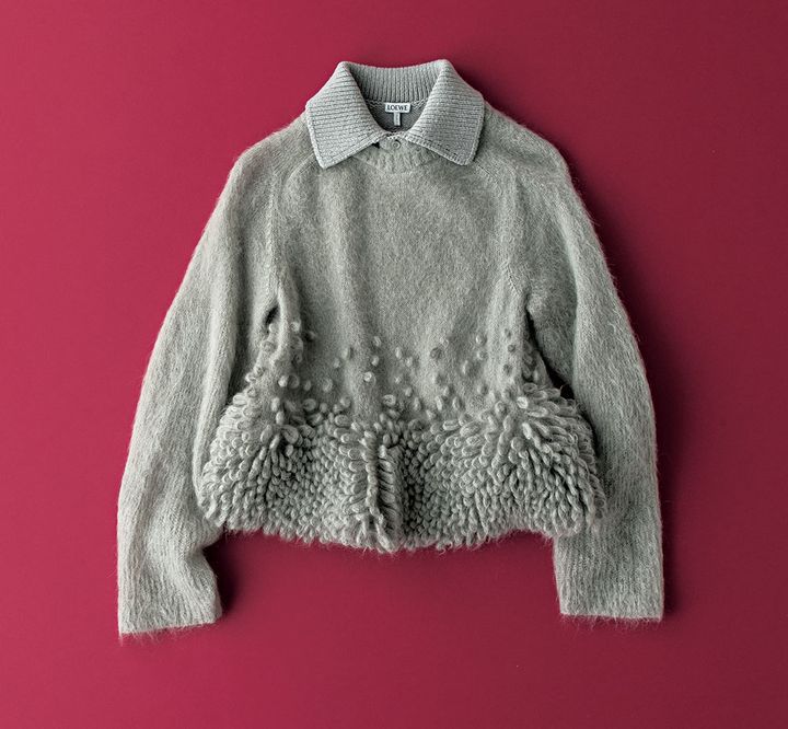 モヘアとウールをブレンドしたフワフワ素材。裾裏はチュール入りでペプラムシルエットをキープ。ニット(ロエベ/ロエベ ジャパン クライアントサービス)