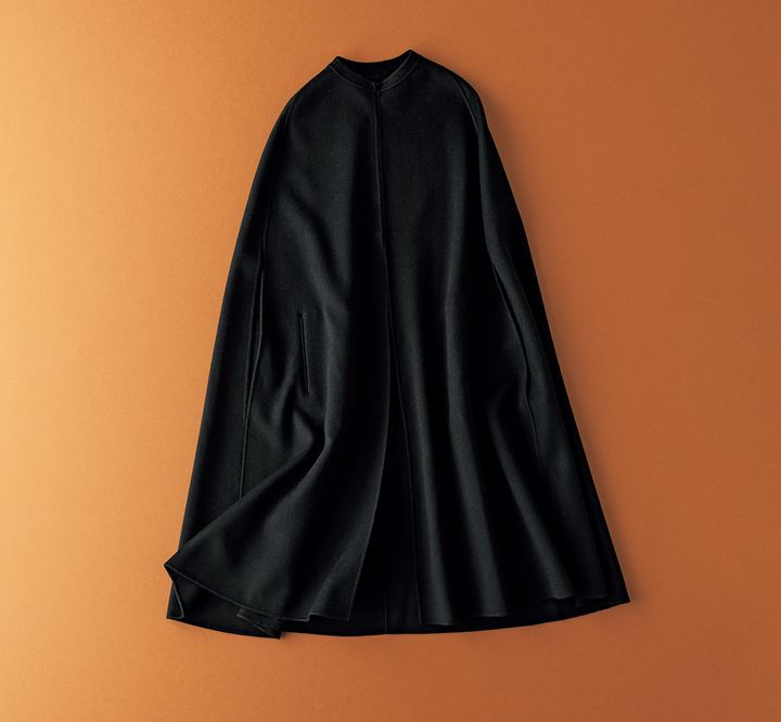 カシミアブレンドのロング丈ケープ。1枚仕立ての細身シルエットで、すっきりと着こなせます。ロングケープ(HER.)